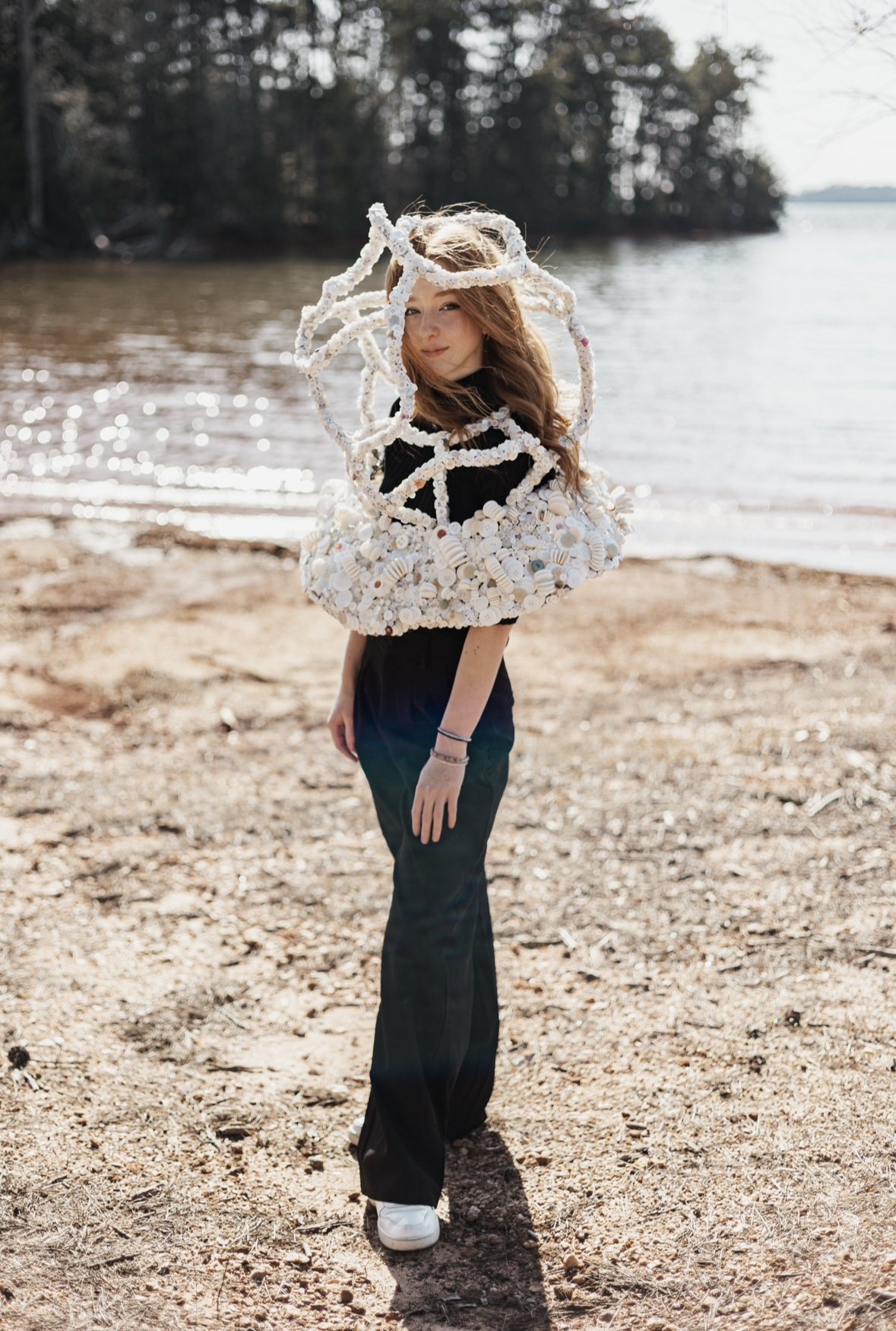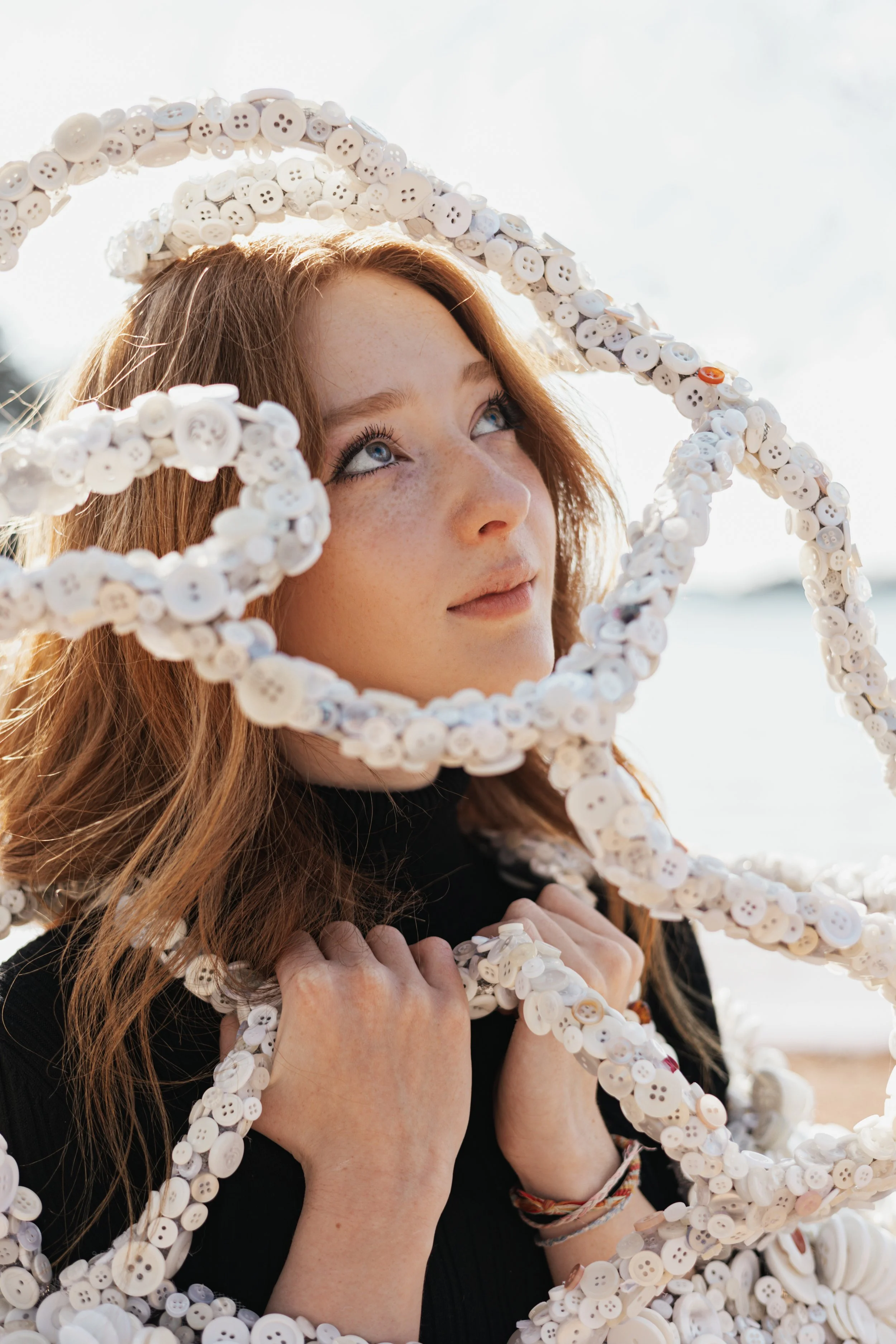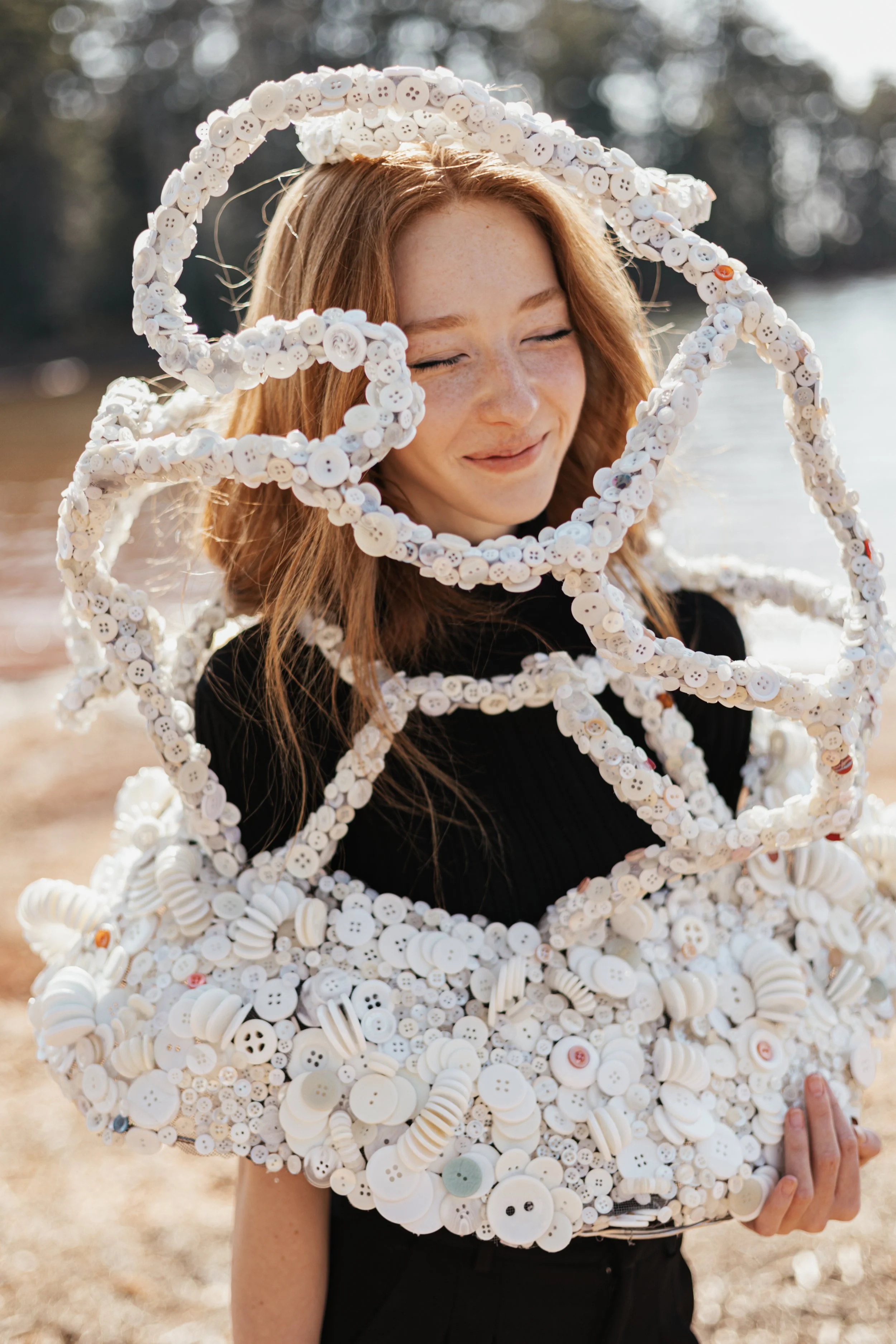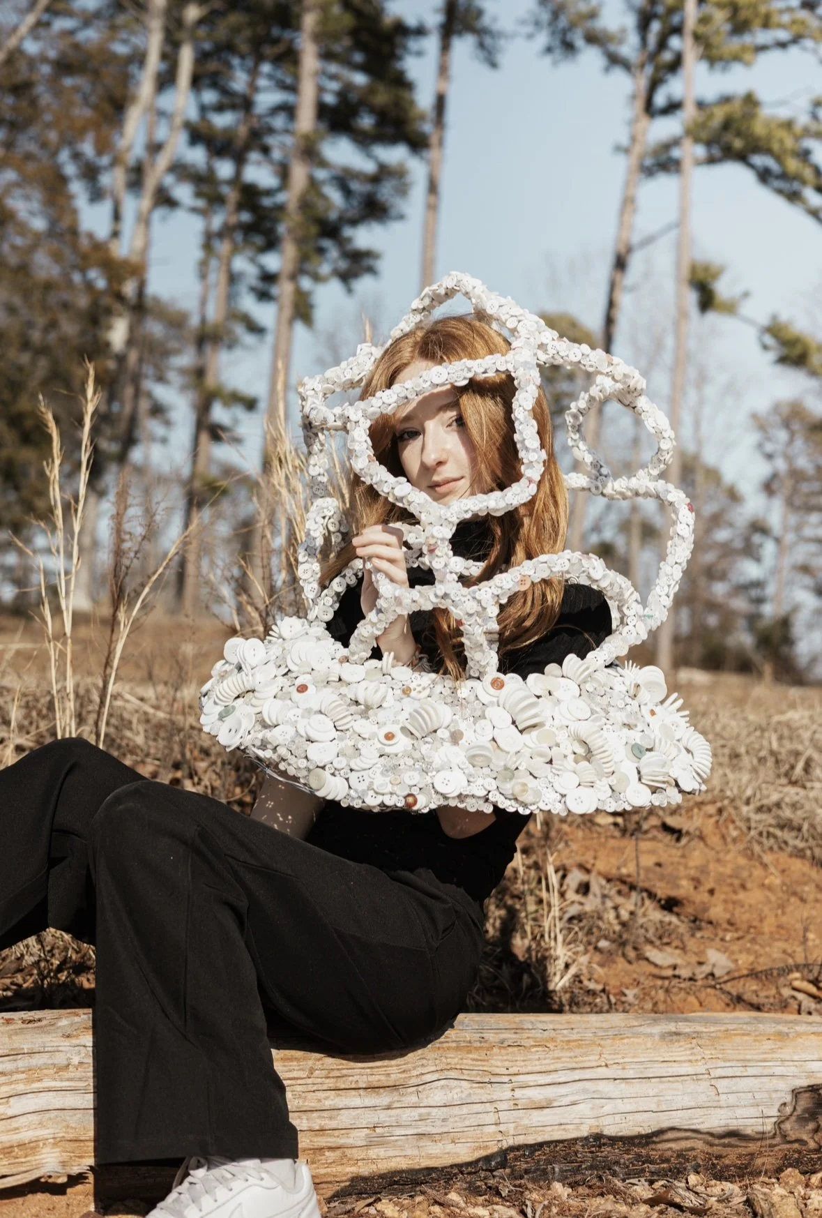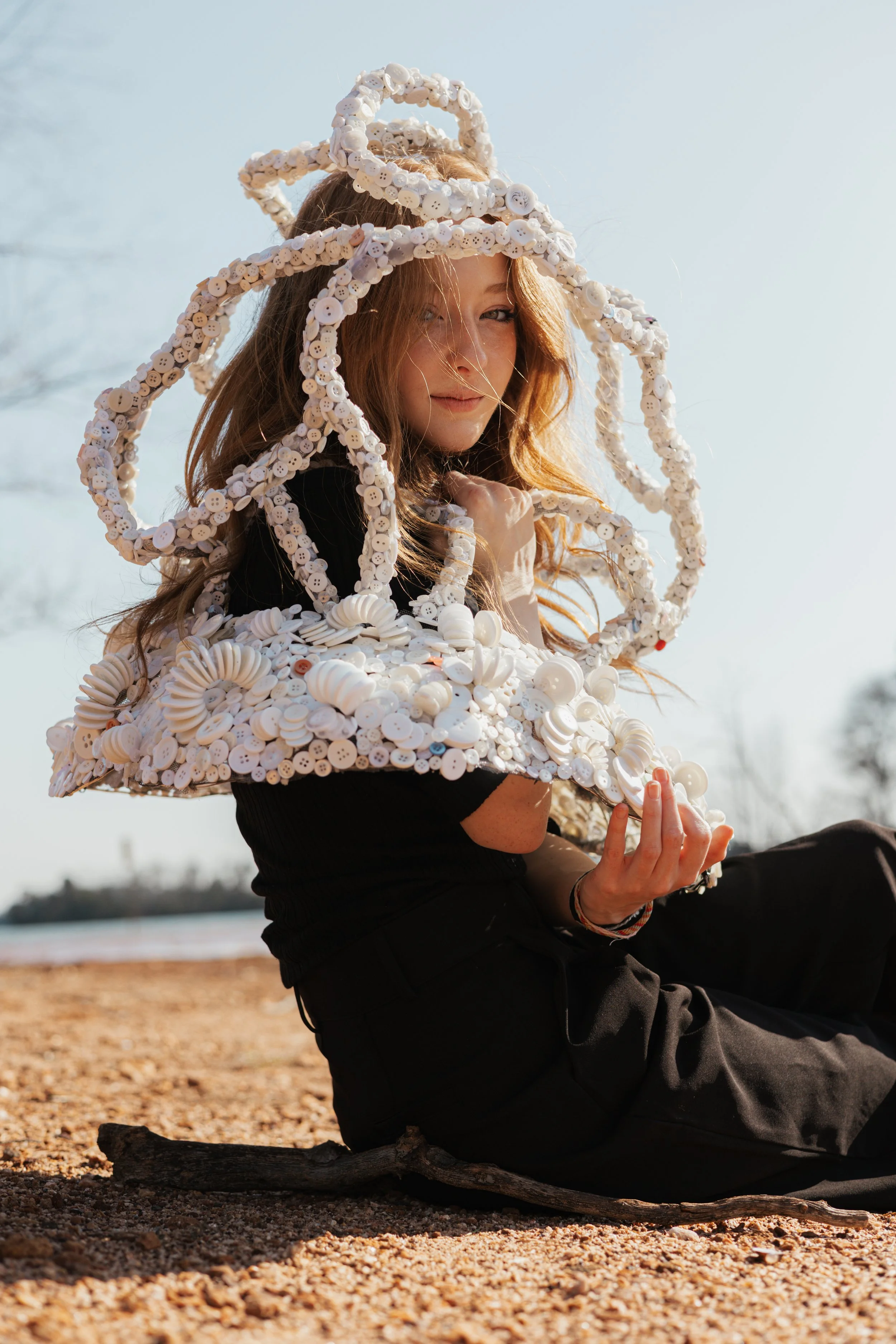 For this project, we were tasked with creating a wearable sculpture. I constructed mine entirely from buttons, hot glue, wire, and tinfoil. The piece explores the naivety of youth and the way expectations can quietly shape — and sometimes restrict — a person’s sense of self.
